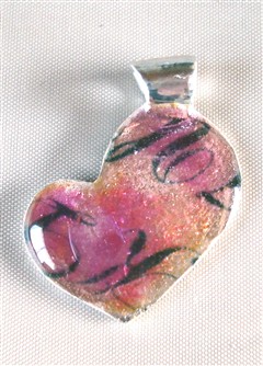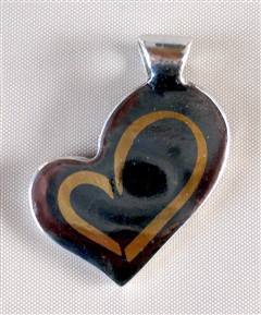 ガラスでハート型を作り、 バチカン部分を銀粘土で 製作しました。 |